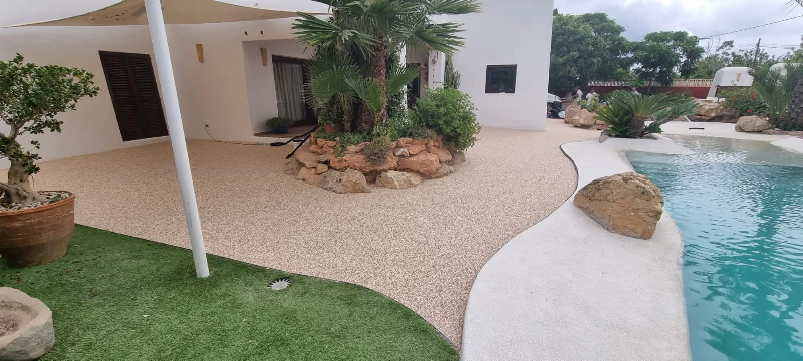 Béton drainant spécial plage de piscine avec capacité d'infiltration de 270 litres par m²/minute. La formulation garantit une surface antidérapante même mouillée et une résistance optimale aux produits chimiques. Texture légèrement rugueuse pour une adhérence maximale pieds nus.