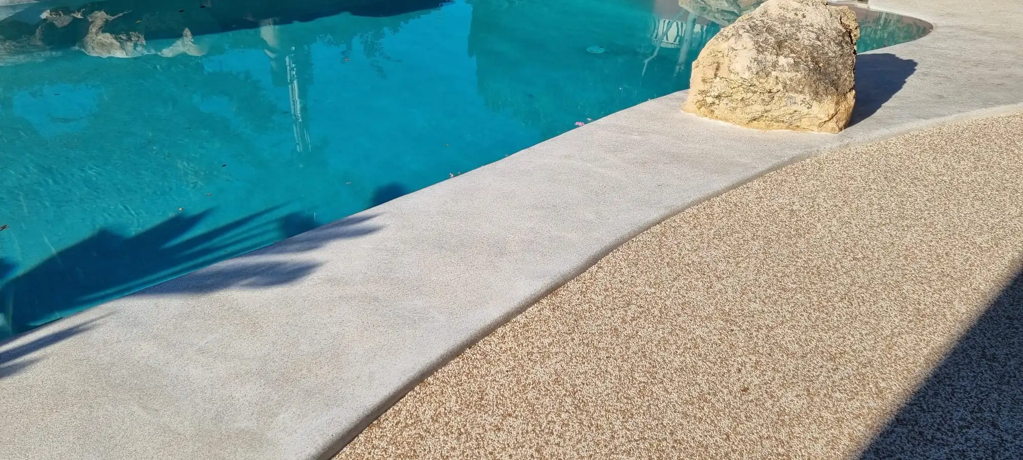 Notre équipe a créé un contour homogène et sécurisé tout autour du bassin, avec une légère pente favorisant l'écoulement de l'eau vers l'extérieur.